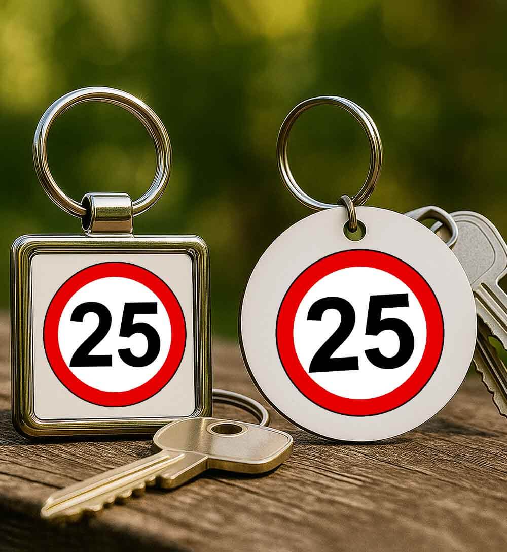 Tedd különlegessé mindennapjaidat ezzel az egyedi Születésnap 25 éves tábla kulcstartóval.
