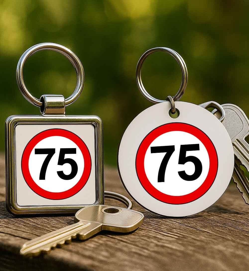 Stílusos és tartós Születésnap 75 éves tábla – Kulcstartó, amely tökéletes mindennapi kiegészítő.
