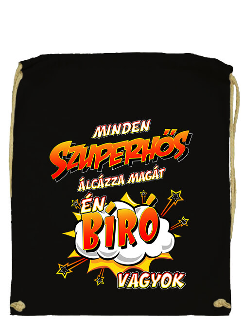 Szuperhős bíró – Prémium tornazsák. A tornazsák vagy hátizsák kényelmes és praktikus viselet a mindennapokban. 310 g/m2 anyagvastagságú, 100% pamutvászon, összehúzható hordozópánttal, megerősített pántnyílással és hímzett fűzőlyukkal. Rendkívül erős, strapabíró anyag. Bármilyen nagy igénybevételnek is kitehető.Szuperhős bíró – Prémium tornazsák szuper sporiknak és tökéletes bíráknak, bíróknak, bírónőknek. Egyedi nyomtatás, tornazsák nyomás a Pólóplanet webshopjában.