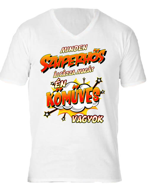 Szuperhős kőműves – Férfi V nyakú póló . Férfi V nyakú rövid ujjú póló. Kényelmes viselet, bársonyos tapintású. Anyaga 100% gyűrűs fonású pamut, 185g/m2 , a fehér színű 180g/m2 anyagvastagságú, tartós anyag. FIGYELEM! Rendelés előtt mindenképp ellenőrizd a mérettáblázatot, mert gyártónként eltérhetnek a méretek. A 100% pamut póló mosás után minimálisan összemehet. A mérettáblázatot alul találod. Szuperhős kőműves – Férfi V nyakú póló szuper szakiknak és mestereknek. Egyedi nyomtatás, póló nyomás a Pólóplanet webshopjában.