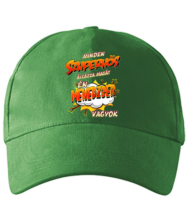Szuperhős menedzser – Baseball sapka ideális választás főnököknek, kollégáknak, akik jól hordható, kényelmes kiegészítőt keresnek.