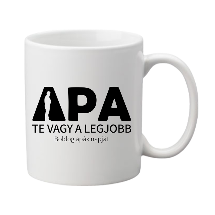 Te vagy a legjobb apa – Bögre. Klasszikus extra fényes fehér bögre 3dl-es méretben. Mikrózható és mosogatógépben mosogatható. Hosszan tartó színtartás és kopásállóság. Te vagy a legjobb apa – Bögre apák napi ajándék. Póló tervezés, pólóra nyomtatás a Pólóplanet webáruház oldalán.