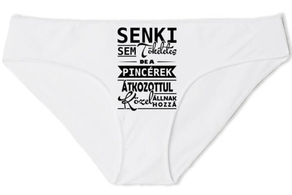 Tökéletes pincérek – Női bugyi. A bugyi hagyományos szabású, de mégis szexi. Kényelmes viseletet biztosít, selymes tapintású. Anyaga 95% pamut és 5% elasztán. Tökéletes pincérek – Női bugyi szuper felszolgálóknak. Fehérnemű nyomtatás, bugyi nyomtatás a Pólóplanet webáruház oldalán.