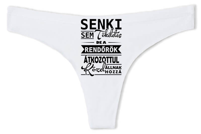 Tökéletes rendőrök – Tanga. A tanga bugyi szexi és kényelmes ráadásul selymes tapintású fehérnemű. Anyaga 95% pamut és 5% elasztán. Tökéletes rendőrök – Tanga alsónemű kiváló hekusoknak, zsaruknak. Fehérnemű nyomtatás, bugyi nyomtatás a Pólóplanet webáruház oldalán.