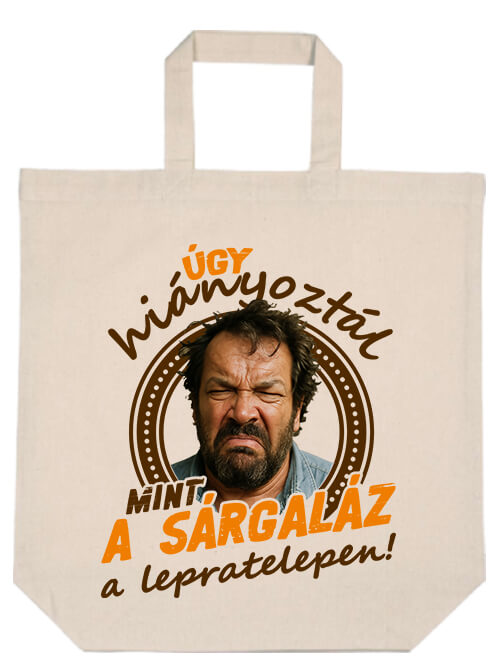 Ajándéknak vagy saját kiegészítőnek, Úgy hiányoztál Bud Spencer vászontáska mindig jó választás: a te stílusodra szabva, strapabíró, és a személyiségedről mesél. Tökéletes ajándék bulis napokra, legendás dumák híveinek, a legjobb arcoknak.