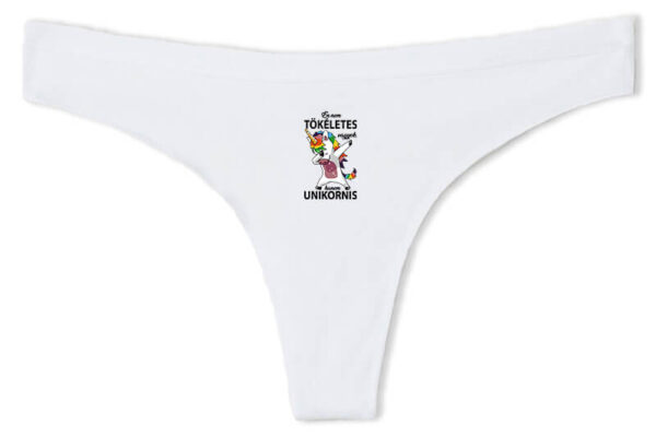 Unikornis vagyok – Tanga. A tanga bugyi szexi, de mégis kényelmes , ráadásul selymes tapintású. Anyaga 95% pamut és 5% elasztán. Ajándéknak is kiváló. Ünnepnapokon és hétköznapokban is hordható. A nyomat digitális nyomtatással (DTG technológia) készül közvetlen a bugyi anyagába ezáltal tartós élénk nyomatot biztosít. Nézd meg a többi termékünket is az alábbi linkre kattintva. Unikornis vagyok – Tanga női alsónemű gyerekeknek és örökifjú felnőtteknek. Fehérnemű, bugyi, boxer a Pólóplanet webáruház oldalán.