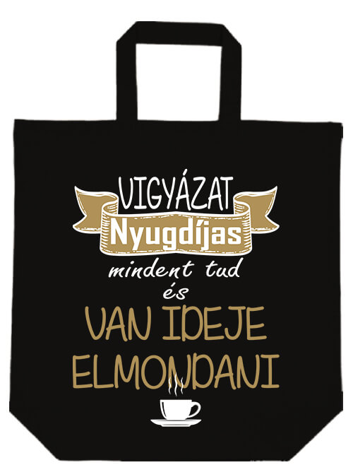 Ajándéknak vagy saját kiegészítőnek, Vigyázat nyugdíjas vászontáska mindig jó választás: a te stílusodra szabva, strapabíró, és a személyiségedről mesél. Tökéletes ajándék nyugdíjas búcsúztatóra, nyugdíjasoknak, mamának, papának.