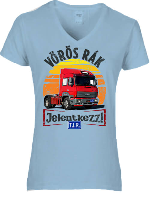 Vörös Rák TIR film – Női V nyakú póló . Női V nyakú rövid ujjú póló. Kényelmes viselet, bársonyos tapintású. Anyaga 100% gyűrűs fonású pamut, 185g/m2, a fehér színű 180g/m2 anyagvastagságú, tartós anyag. Testhez álló szabású. FIGYELEM! Rendelés előtt mindenképp ellenőrizd a mérettáblázatot, mert gyártónként eltérhetnek a méretek! A 100% pamut póló mosás után minimálisan összemehet. A mérettáblázatot alul találod. Vörös Rák TIR film – Női V nyakú póló a Vörös Rák, azaz a legendás IVECO TurboStar kedvelőinek, a T.I.R rajongóinak. Egyedi ajándékok, pólóra nyomtatás a Pólóplanet webáruház oldalán.